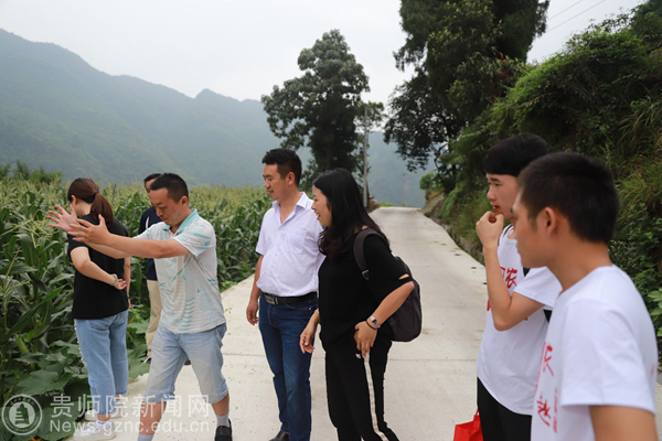 本网讯 7月7日至8日,我校创新创业团队《农趣》指导教师谭韬、项目成员何喜、李庆荣、王枫到石阡县坪道溪村开展项目落地前的场地勘查座谈会。出席本次座谈会领导有石阡县教育局副局长黄妮娜、坪道溪村第一书记谭灵熙、坪道溪村村支书周廷军。