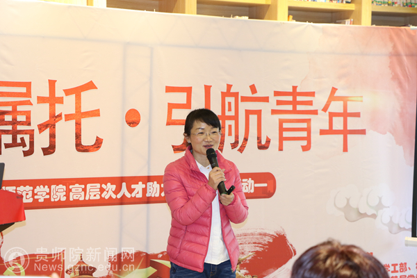 令狐彩桃对“牢记嘱托·引航青年”活动的开展给予充分的肯定。她指出,学校围绕人才培养目标,坚持“以学生为本”的原则,充分调动高层次人才在“全员育人、全方位育人”中的积极性、主动性,在理想与信念的树立、学习习惯的养成、学习能力的提高等方面对学生进行引导,发挥好高层次人才在青年学生成长成才过程中的引领作用,为青年学生实现人生出彩搭建舞台。她谈了两点希望:一是希望老师们牢记嘱托,秉承使命,以德立身、以德立学、以德树人。以本次活动为纽带,进一步加强师生间的交流互动,真正成为学生成长成才的引导者和贴心人,教学相长,共同进步,为进一步打造“有理想、有气质、有温度、有活力”的师院贡献力量;二是希望广大师院学子,牢记使命,珍惜时光,做“有理想、有本领、有担当”的新时代师院人。要合理规划大学生活,勤于学、善于思、敏于行,不断充实提高自己,认真总结经验,找准定位,坚定理想,在奋斗中让人生出彩。