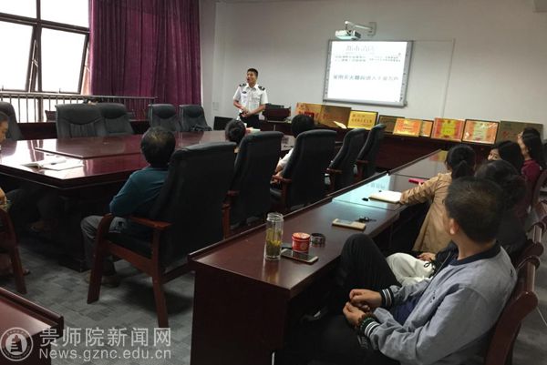本网讯 由于图书馆属于一级防火单位,为了严防冬季因用电量大,或操作不当容易引发火灾的隐患,同时提高图书馆每个馆员的消防意识和应急技能,确保在突发火灾事故时,能够高效、有序地进行抢险、救援和疏散处理。9月20日上午,图书馆在会议室举办了消防安全知识培训大会,并特别邀请贵州省安民消防宣教中心的廖超教官进行消防安全知识讲座。