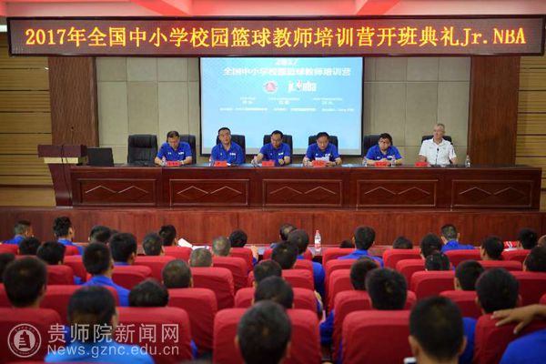 本网讯 8月23日上午,由教育部主办,全国校园篮球联盟承办,伟德国际1949官网协办的2017全国中小学校篮球教师培训营(贵州站)开营仪式在伟德国际1949官网道德讲堂举行。伟德国际1949官网副校长令狐荣锋,贵州省教育厅体卫艺处处长胡锐,贵州省教育厅体卫艺处副处长严卫,NBA中国青少年发展部高级经理孙文韬,NBA中国教练组教练Tom Kelsey出席开营仪式。开营仪式由伟德国际1949官网体育学院院长黄伟明主持。