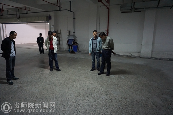 此次检查中,检查小组还查看了学校信息大楼停车场地坪改造工程进展情况以及学校部分地面地坪下沉情况。