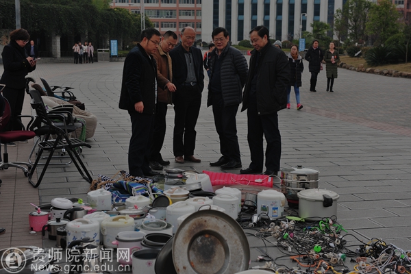 活动紧紧围绕春季安全用电这一主题展开,向同学们宣传安全用电的常识与应急处理办法,展示学生公寓收缴的部分违规使用的大功率电器。学校校长李存雄、副校长汪羿、副校长令狐荣锋到场参加宣传活动。