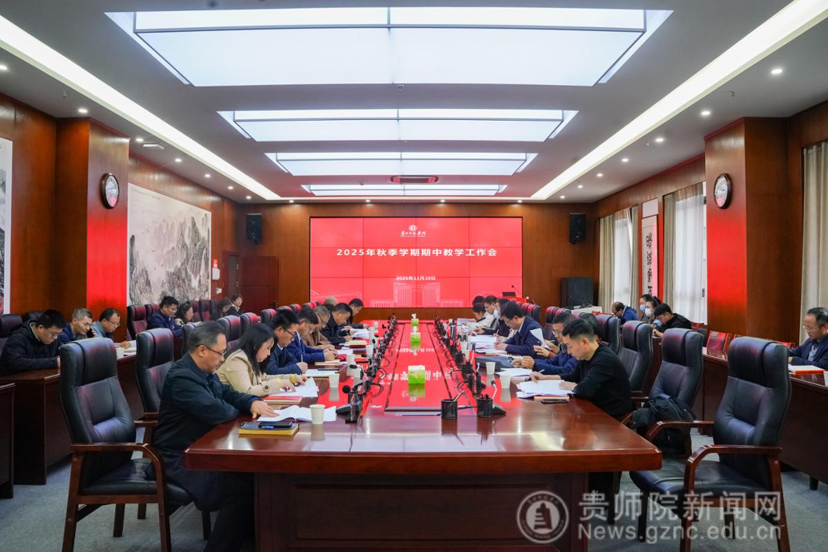 本网讯 11月10日下午,我校在信息楼二楼会议室组织召开2025年秋季学期期中教学工作会,全面总结上半学期教学工作成效,分析存在的问题,并安排部署下半学期重点教学任务。校长王蜀黔出席会议并讲话。会议由党委常委、副校长潘运主持。