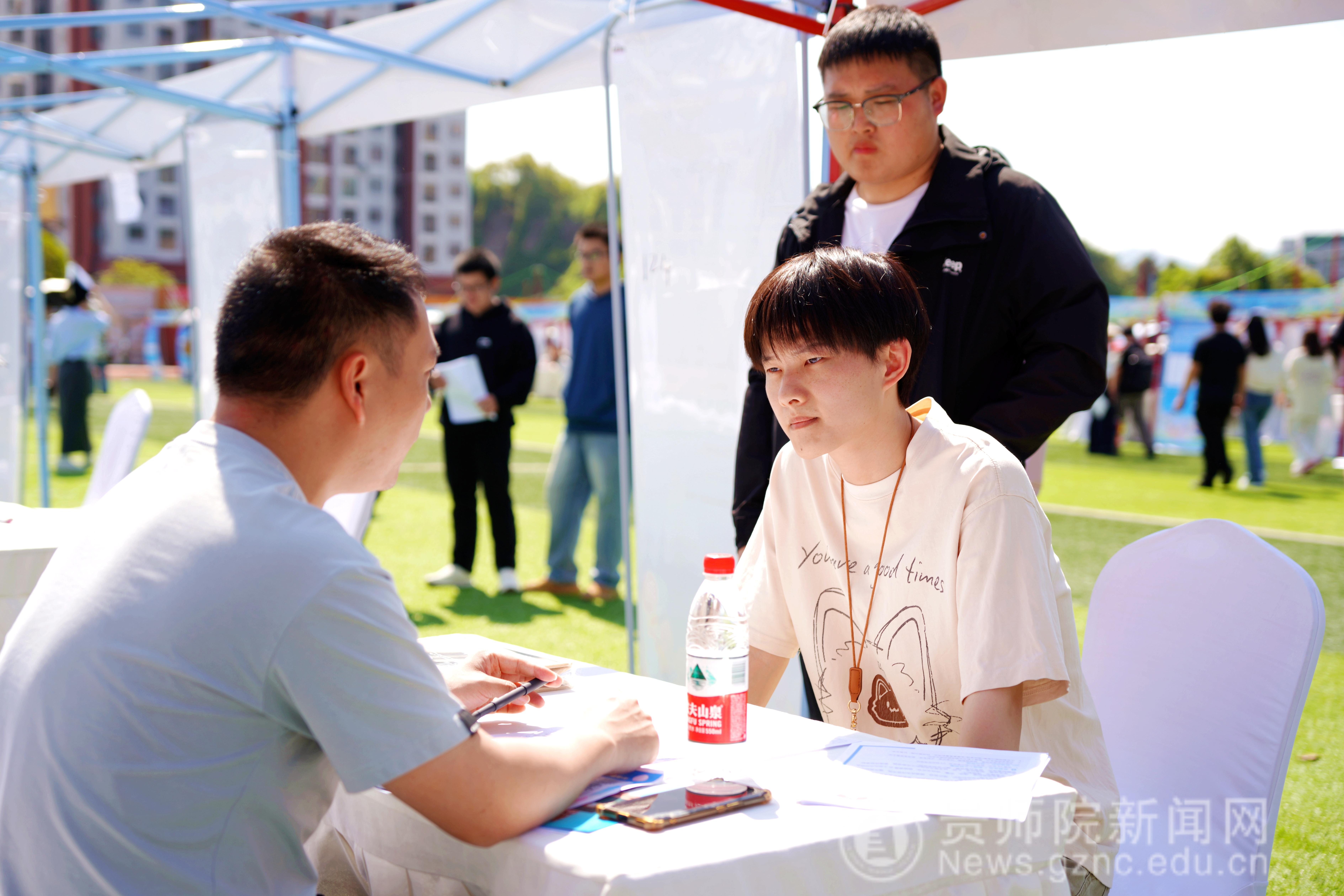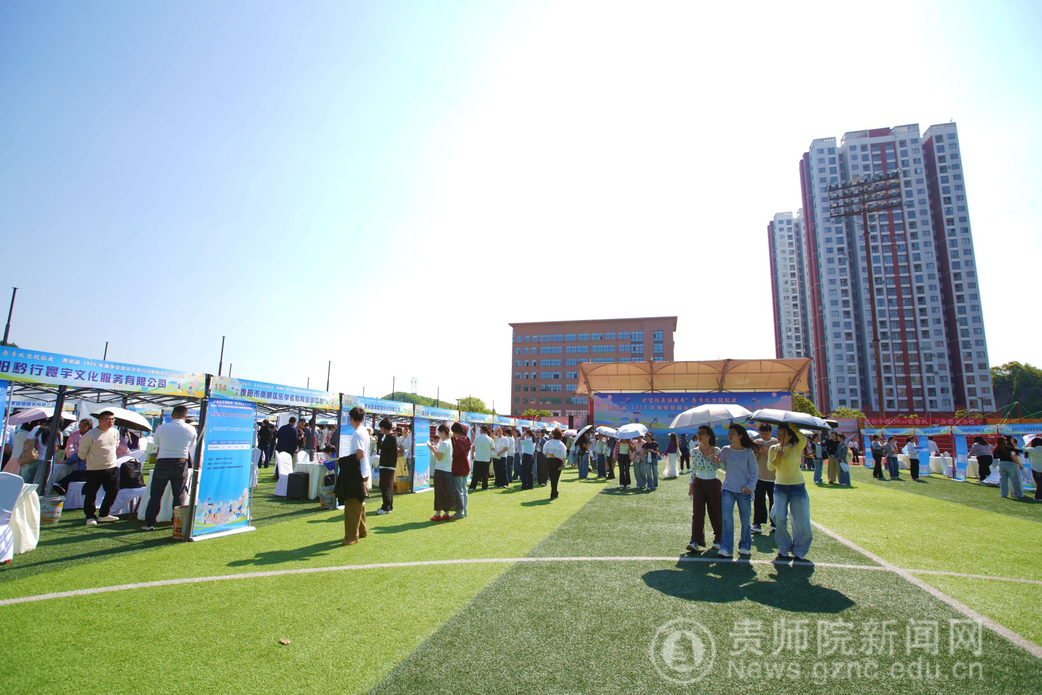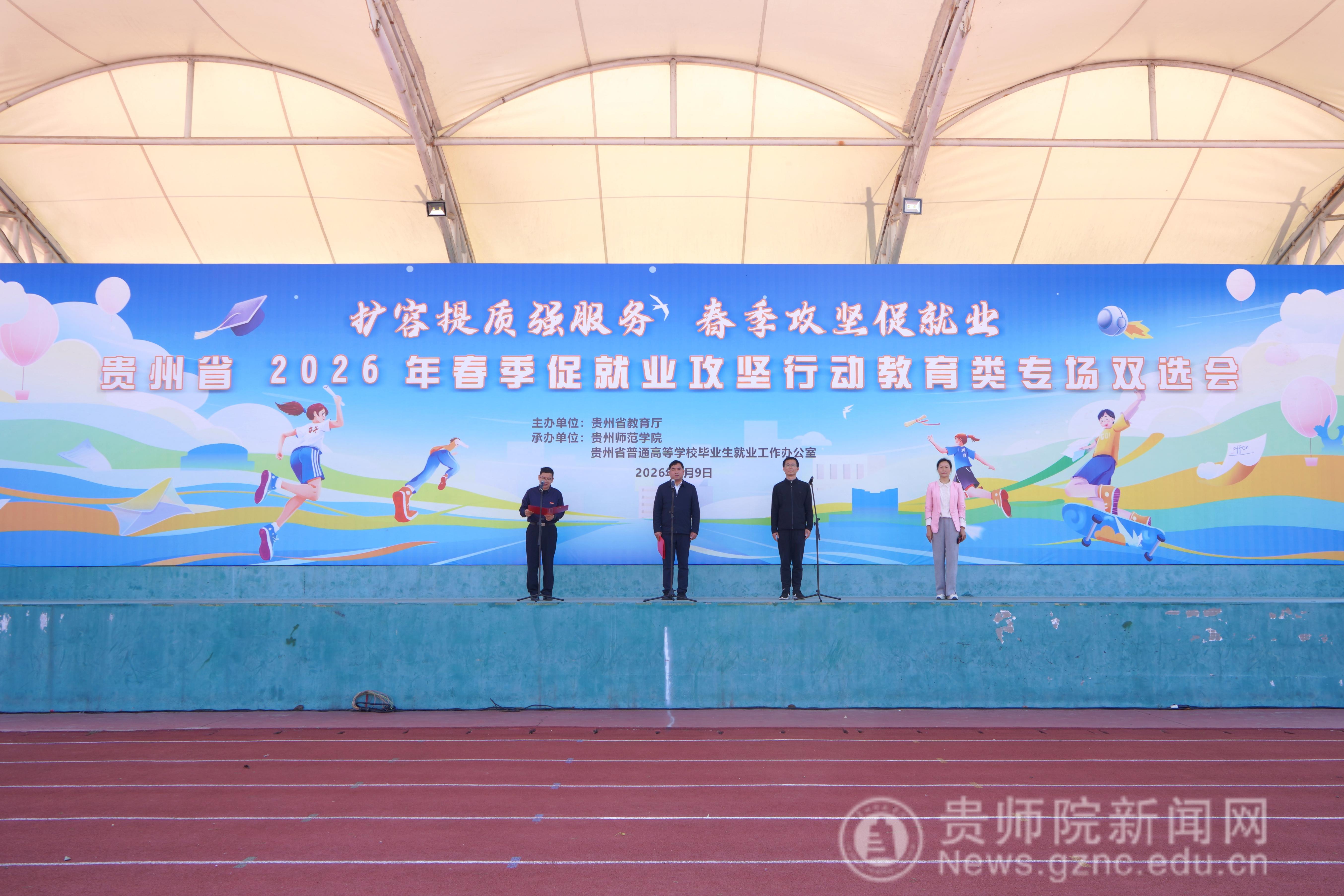 本网讯 为深入学习贯彻党的二十大精神及习近平总书记关于教育的重要论述,全面落实党中央、国务院和省委、省政府关于高校毕业生就业工作的决策部署,扎实推进教育部2026届高校毕业生就业扩容提质行动,4月9日,由贵州省教育厅主办,伟德国际1949官网、贵州省普通高等学校毕业生就业工作办公室承办的“扩容提质强服务 春季攻坚促就业”—贵州省2026年春季促就业攻坚行动教育类专场双选会在我校足球场举行。