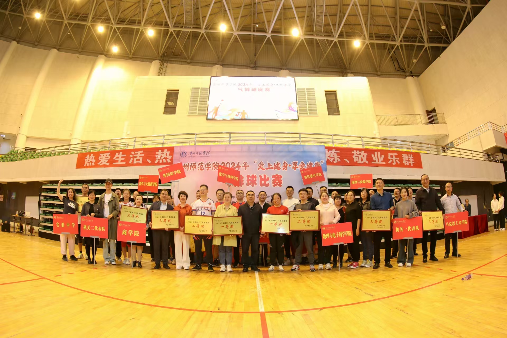 本网讯 为进一步推进校园文化建设、开展丰富多彩的教职工活动,不断提高教职工的健康水平,引导教职工树立“热爱生活、热爱工作、健康锻炼、敬业乐群”的理念,构建和谐与活力的校园文化。11月5日-11月11日,我校成功开展2024年“爱上健身,享受健康”教职工气排球比赛。本次比赛由校工会主办、体育学院基层工会承办,共有19支代表队伍参加比赛,两百余名教职工踊跃参加。
