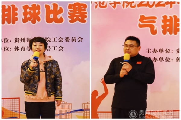校工会主席刘红玲宣布比赛开始 (左图) 体育学院副院长体育学院副院长朱继伟作比赛规程讲解(右图)