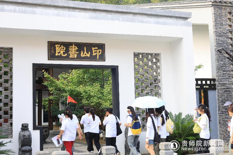 上午8点30分,第一批参观团队在导游学长学姐的带领下,排着整齐对队伍,迈着自信的步伐,来到了参观的第一站——印山书院。学校印山书院作为贵州教育历史文脉的传承载体,与贵州教育使馆呼应,形成“一院一馆”的布局。新同学们在书院里,探寻古代师道文化,响应继承和发扬贵州教育的精神的号召,立志好好学习,努力学有所成,争取能成为行业的佼佼者。