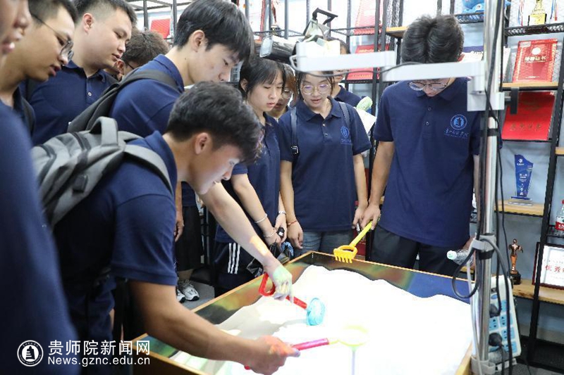 来到创新创业学院,各种新奇的创新成果,机甲大师、动作捕捉等项目让同学们目不暇接。来到艺术实践工作坊(美育实践基地),队伍又被各种精美的艺术品和文创产品所包围。