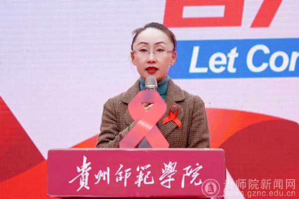 任洁宣布活动正式启动并呼吁全校学生要关心社会、热爱生活,在成长的道路上,珍惜健康,远离高危行为。要牢固树立“健康第一”责任人意识,用实际行动筑起青年学生预防艾滋病的坚固防线,共同推动全校艾滋病防控工作再上新台阶,营造学校预防艾滋病“从我做起”的良好氛围,为推动全省艾滋病防控工作贡献贵师院力量。