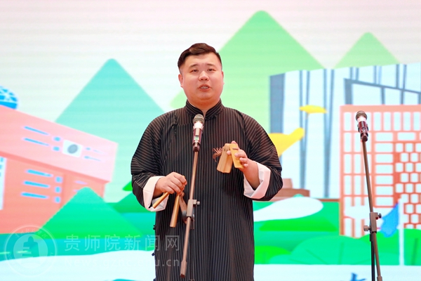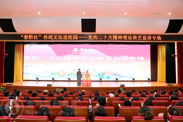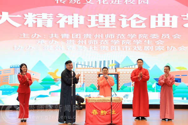 本网讯 为传承中华优秀传统文化,抓好党的二十大精神青年化阐释宣讲,营造良好校园文化艺术氛围,进一步丰富我校的精神文化生活,提高大学生的艺术修养,引领大学生弘扬先进文化和中国民族文化。4月25日,由校团委主办,校学生会承办的“春黔社”传统文化进校园——党的二十大精神理论曲艺宣讲专场演出在综合实训楼一楼报告厅顺利举行,演出吸引了全校近800余名师生现场观看。