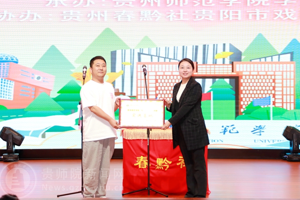 演出前,校团委向春黔社授牌,将春黔社作为伟德国际1949官网“印山青年”宣讲团的实践基地之一。校团委表示会进一步发挥理论宣讲实践基地的阵地作用,深入学习宣传贯彻习近平新时代中国特色社会主义思想和党的二十大精神,结合曲艺、相声的形式搭建党的创新理论与普通群众之间的桥梁纽带,更好推动党的创新理论“飞入寻常百姓家”。