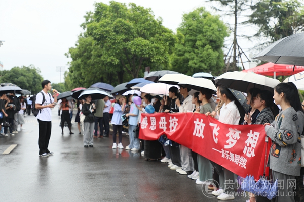 风斜雨细,割不断深厚情谊。学校为毕业生们准备专车,将同学们分别送往火车站、客运站、高铁站。邹晓青暖心询问毕业生的乘车方向,并送上真挚祝福。校园文明督查队、各学院学生会积极热情地为毕业生指引上车点和搬运行李。前来送别的同学拉起横幅,为离别的学长学姐送上了一曲曲骊歌,衷心祝愿毕业生们前程似锦,一帆风顺。中午1点,车辆缓缓开动,邹晓青以及各位老师与毕业生们一一告别,毕业生们眼含热泪,轻轻挥手道别,带着母校的期望,带着大家的叮咛和祝福,满怀依依惜别之情,满怀对未来的美好憧憬,启程步入新的人生征途。