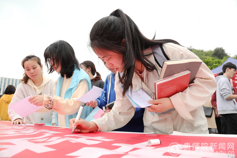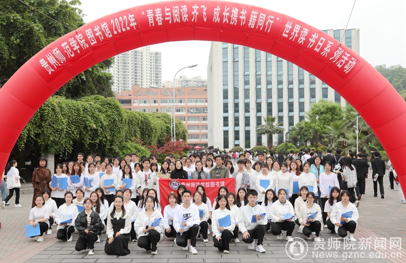 本网讯 鉴湖暖日和风,印山朝闻书香。2022年4月22日,为了丰富校园文化生活,激发学生读书热情,贯彻落实省教育厅开展“走好新时代长征路”主题班会精神,按照学校统一部署,在“4.23”世界读书日到来之际,我校图书馆带领大学生读者协会以主题班会的方式,在鉴湖广场开展了“青春与阅读齐飞,成长携书籍同行”系列阅读推广活动。活动现场,学校副校长邹晓青亲临指导并宣布活动开幕。