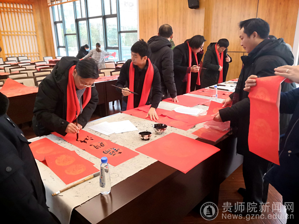 新年写春联、贴春联是我国传统文化习俗,虽然天气严寒、路面凝冻,但大家依然热情洋溢,红红的春联福字和一张张的笑脸将活动现场烘托得格外喜庆。
