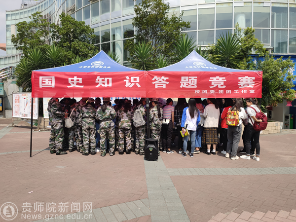 本网讯 为庆祝祖国70华诞,进一步加深广大师生对国史的认识,提升学生思想道德修养。2019年9月26日,伟德国际1949官网校团委携手团团工作室在奋斗广场举办了“国史知识答题竞赛”活动。
