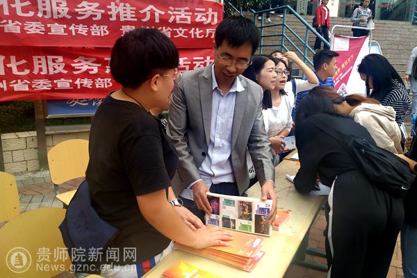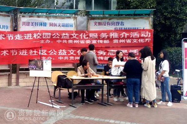 9月8日,贵州省多彩贵州文化艺术节走进校园公益文化服务推介活动在我校举行,本次活动由多彩贵州文化艺术节组委会主办。通过此次活动,吸引校园师生参与体验,为广大师生提供与文化交流与体验的平台。