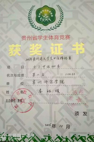 本网讯 田径纪录又打破,往事悄然消逝烟雨中,今彰显运动健儿本色。秦裕媛,我校15级体教2班的学生,在5月13日上午的女子乙组400米比赛预赛中以1:05΄13΄΄的优异成绩打破校记录。而在下午的400米决赛中她又以1:04΄78΄΄的成绩打破预赛成绩。她曾获得过“大学生田径锦标赛”400米第二名、100米第四名、4*100米第五名、4*400米第五名,“2016贵州省校园足球四级联赛第三名”,第四届我校体育节100米第一名、200米第一名。