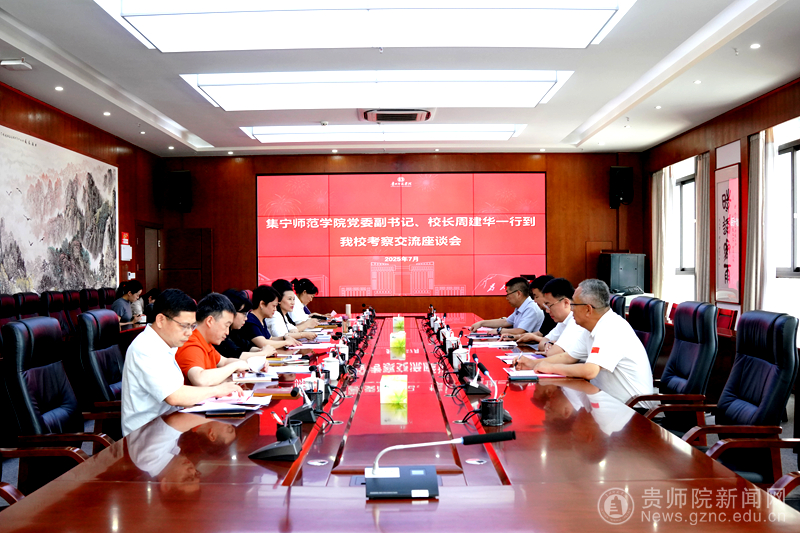 本网讯 7月3日,集宁师范学院校长周建华、副校长拓俊杰一行5人来我校考察交流,重点围绕本科教育教学改革、审核评估准备、师资队伍建设及质量保障体系等工作进行深入探讨。我校校长王蜀黔、党委副书记邹晓青、副校长任洁,以及教师工作部(处)、教务处、人事处、招就处、质评办、创新创业学院负责人和审核评估评建办相关人员参加交流活动。