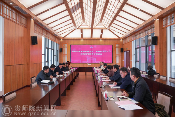 本网讯 3月19日,贵州出版集团党委书记、董事长王焱一行到我校考察调研座谈,校党委书记石培新,校长韦维,校党委副书记邹晓青出席座谈会,会议由韦维主持。