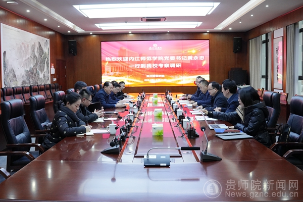本网讯 12月11日,内江师范学院党委书记黄永忠一行莅临我校考察调研。校党委书记石培新,校党委委员、副校长潘运陪同调研并出席座谈会。