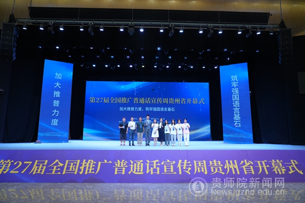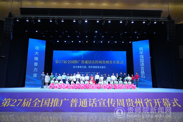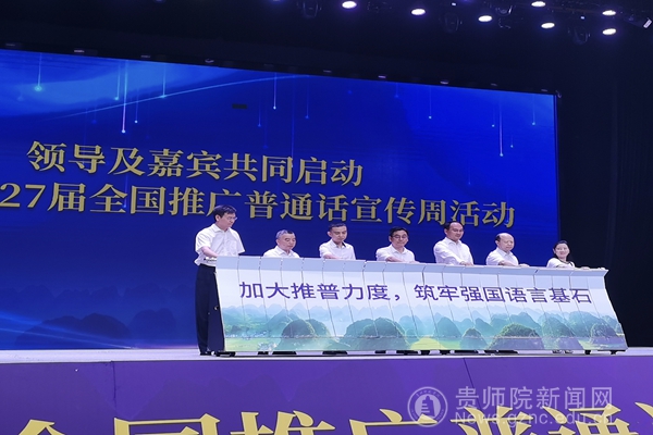 省委教育工委委员、省教育厅党组成员、副厅长杨天仪,黔西南州委常委、州委宣传部部长、州委统战部部长、州委教育工委书记左尚武,团省委副书记施昆,省广播电视局党组成员、副局长范华,省民族宗教事务委员会二级巡视员吴继堂,我校党委委员、副校长邹晓青,兴义民族师范学院党委委员、副校长张兴毅共同上台,启动开幕式推杆,标志着第27届全国推广普通话宣传周在贵州省正式开幕。