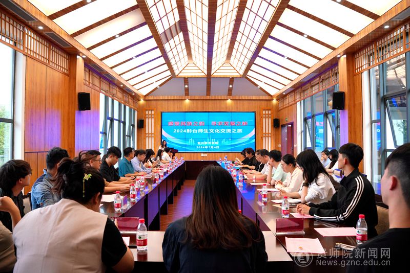 本网讯 2024年7月4日下午,由伟德国际1949官网主办的“感受民族之韵、寻求发展之新--2024年黔台师生文化交流之旅”闭营仪式在我校印山书院山水讲堂顺利举行。贵州省台办交流处处长张华,校党委委员、副校长任洁,文学与传媒学院党委副书记陈亦桥出席本次闭营仪式。台湾中原大学、弘光科技大学、元智大学来访师生,我校师生代表及我校港澳台事务办公室全体人员参会。会议由学校港澳台事务办公室副主任张彬主持。闭营仪式在贵州宣传片《阅尽千山,开启无限》中拉开序幕。