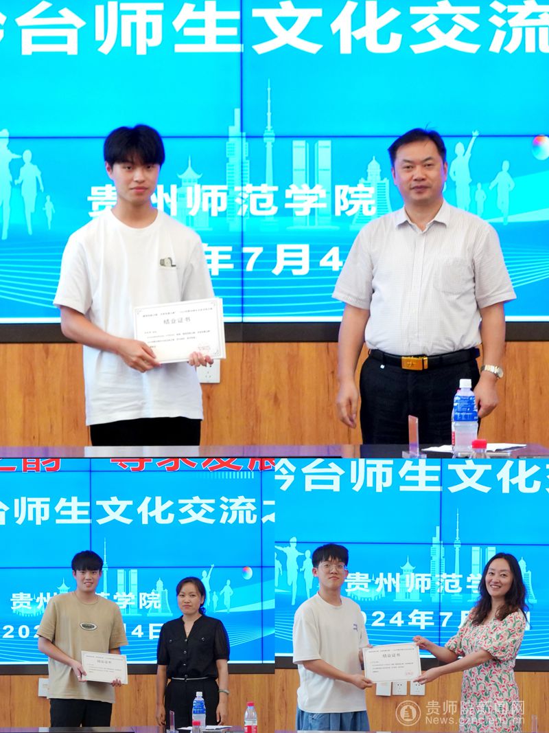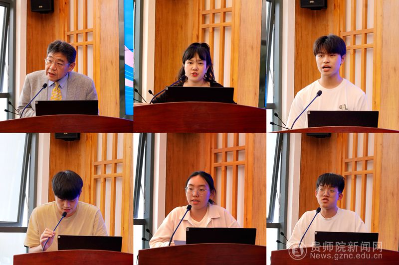 接下来,台湾教师代表王明诚教授发言。他认为此次活动行程充实丰富,既有中国传统文化、贵州教育文化沿革、贵师院双创特色等元素丰富的课程,也有贵州自然风光、历史人文,以及当代贵州发展等主题的文化实践考察。台湾师生们通过切身实地的感受,让两岸青少年深刻认识到祖国的发展变化,积极为国家事业和两岸关系的进一步发展贡献自己的青春力量。接着,我校教师代表徐安媞发言。她说道,此次黔台青年交流活动,有效促进了黔台地区青年之间的交流与互动,实现心灵契合,让大家共同感受到了“两岸一家亲”的浓浓亲情,为推动两岸青年的融合发展打下了坚实基础。来自台湾弘光科技大学、中原大学、元智大学以及我校的学生代表依次分享了此次活动的感悟与收获。