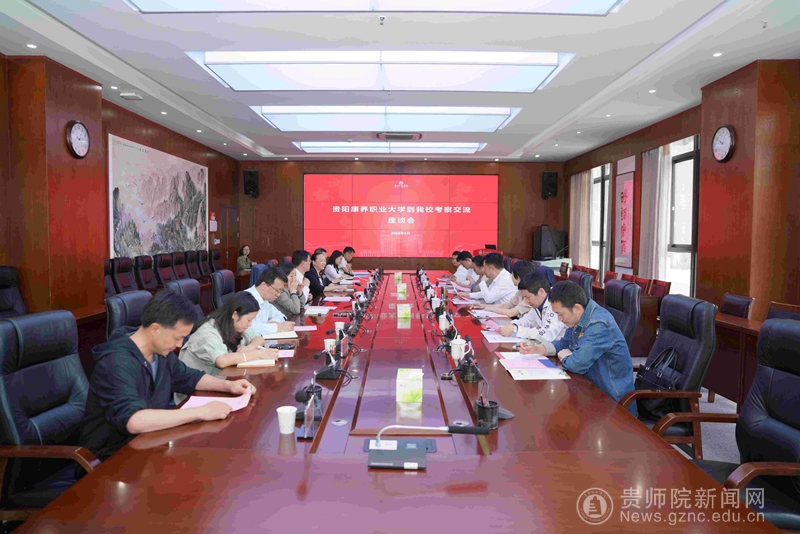 本网讯 4月30日上午,贵阳康养大学副校长唐天率教务处、计财处、科研处、现代教育技术与信息中心等一行7人到访我校,就相关工作进行考察交流,双方在信息楼二楼会议室进行座谈。校党委委员、副校长潘运全程陪同考察并参加座谈,座谈会由教务处处长邓琴主持。