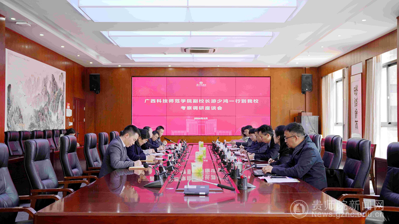 本网讯 3月12日上午,广西科技师范学院副校长游少鸿一行到访我校,就教育教学相关工作进行考察调研。校党委书记石培新会见了游少鸿副校长一行,校党委委员、副校长邹晓青全程陪同调研并参加座谈,座谈会由教务处处长邓琴主持。