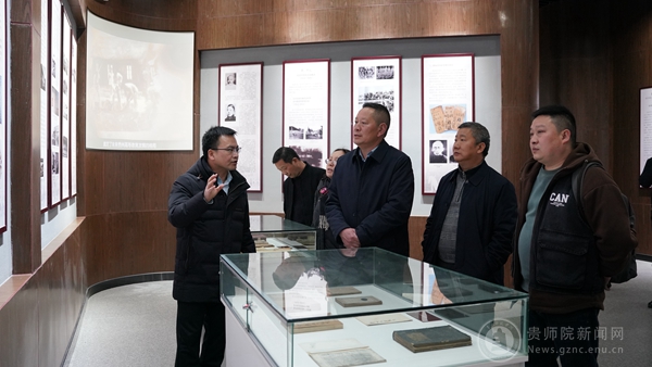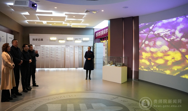 龙健对赵英才一行的到来表示热烈欢迎并陪同参观了我校贵州教育史馆、校史馆和印山书院。双方就贵州教育史馆、校史馆建设情况、实物和史料收集、展厅呈现形式与亮点等方面进行了深入细致的交流。龙健表示,学校的“两馆一院”是传承校园文化的重要载体,是宣传展示学校文化育人成就的重要窗口,希望今后两校能够以此次交流为契机,在文化育人阵地建设工作上互通有无,同时立足办学特色,从文化育人主体、文化传播载体、文化育人环境等方面推进学校文化建设高质量发展。