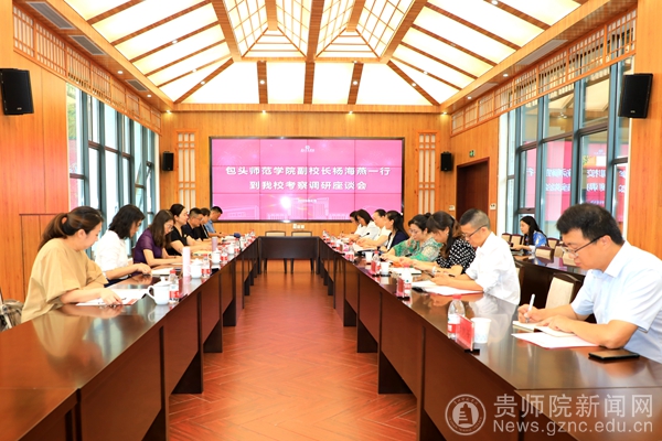 本网讯 8月21日,包头师范学院党委委员、副校长杨海燕一行莅临我校考察调研,校党委委员、副校长邹晓青陪同调研并出席座谈会。座谈会由邹晓青主持。