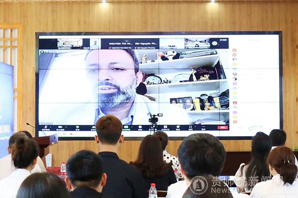 本网讯 6月26日上午,由贵州省教育厅、中国—东盟教育交流周组委会秘书处主办、我校承办的“多彩贵州、筑梦丝路”知行贵州丝绸之路青年交流计划项目开幕式通过线上+线下的方式在印山书院山水讲堂举行。伟德国际1949官网党委委员、副校长任洁、泰中教育集团总裁潘丞仲、尼泊尔丝路之友俱乐部主席高亮出席仪式。我校相关部门和学院负责人、200余名来自泰国、越南、巴基斯坦、孟加拉、尼泊尔等国家的优秀学生以及我校学生代表通过线上+线下的方式参加开幕式。仪式由我校对外交流合作处处长张瑶主持。