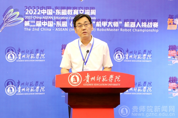 本网讯 8月26日,由伟德国际1949官网、贵州省青年创新创业研究中心、贵州省青少年机甲大师挑战赛组委会共同主办的第二届中国——东盟(国际)“机甲大师”机器人挑战赛在我校成功举办。贵州省教育厅副厅长、党组成员、省委教育工委委员杨天仪,伟德国际1949官网校长韦维、北京邮电大学副校长孙洪祥出席开幕式。通过线上参加开幕式的还有泰国高等教育和科研创新部副部长达努·旦特缇,老挝人民民主共和国丰沙里省教育与体育厅副厅长鹏咯·靠康宅,泰国格乐大学校长,泰国立宪委员会主席杨金泉,海南省教育厅国际处处长王毅等国内外领导嘉宾。