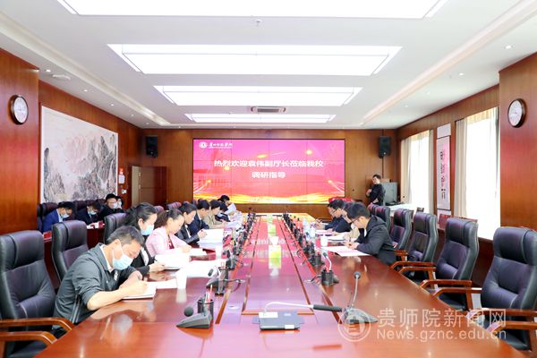 本网讯 4月13日上午,贵州省文化和旅游厅副厅长袁伟、文旅厅博物馆与社会文物处副处长杨敏一行4人到我校调研并召开座谈会。校党委书记石培新、校长韦维、副校长邹晓青陪同并出席座谈会。