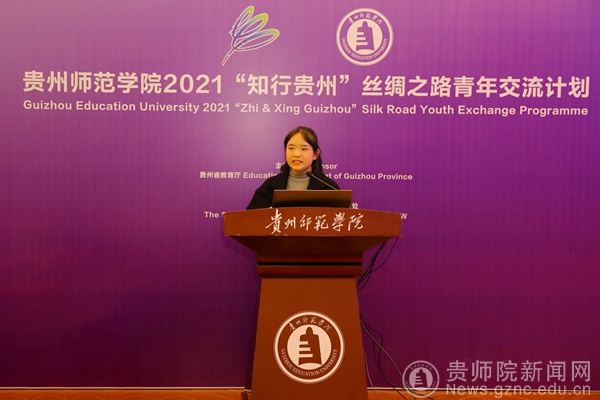 我校文学与传媒学院学生代表周茂圆发言,她讲述了自己在五天课程中的收获和感悟,表示本次“知行贵州”丝绸之路青年交流计划短暂而充实,收获颇丰,为我校学子和“一带一路”国家青年搭建起了沟通交流的桥梁。同时,也表达了对学校和所有老师的感谢。