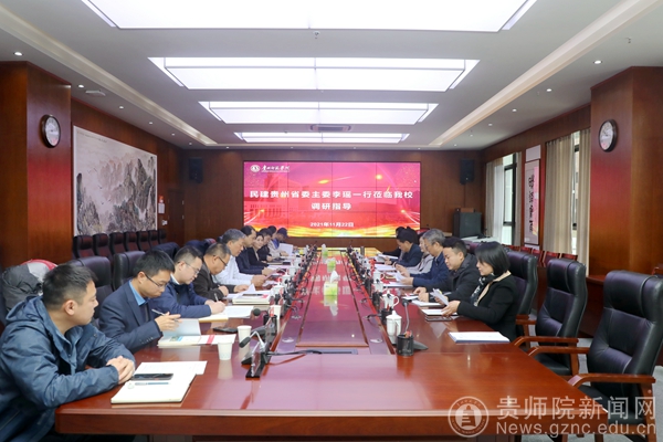 本网讯 11月22日,民建中央常委、民建中央财政金融委员会主任、民建贵州省委主委李瑶一行到我校调研指导工作,校党委书记石培新、校长韦维等校领导陪同调研并参加座谈,座谈会由副校长余维祥主持。