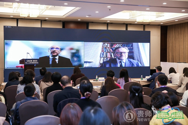 10月22日上午,我校与会人员参加了第22届中国国际教育年会全体大会。中国教育部党组书记、部长怀进鹏、英国教育部常务次官苏珊·阿克兰-胡德、新加坡教育部长陈振声、联合国教科文组织教育助理总干事斯蒂芬妮亚·贾尼尼作开幕式致辞,中国教育国际交流协会会长刘利民主持开幕式。中国工程院院士、中国载人航天工程总设计师周建平,英国皇家工程院院长吉姆·麦克唐纳,复旦大学党委书记焦扬,美国国际教育协会主席艾伦·古德曼作主旨发言,中国教育国际交流协会秘书长王永利主持主旨发言环节。浙江大学党委书记任少波、中国教育部科学技术与信息化司司长雷朝滋、英国文化教育协会中国区主任、英国大使馆文化教育公使包迈岫、上海纽约大学常务副校长杰弗里·雷蒙、华为技术有限公司企业BG全球政府业务部总裁岳坤几位嘉宾聚焦国际教育前沿动态展开深度对话,为后疫情时代国际教育合作高质量发展建睿智之言、献务实之策,中国传媒大学政府与公共事务学院院长、中国教育国际交流协会常务理事董关鹏主持研讨会环节。