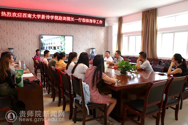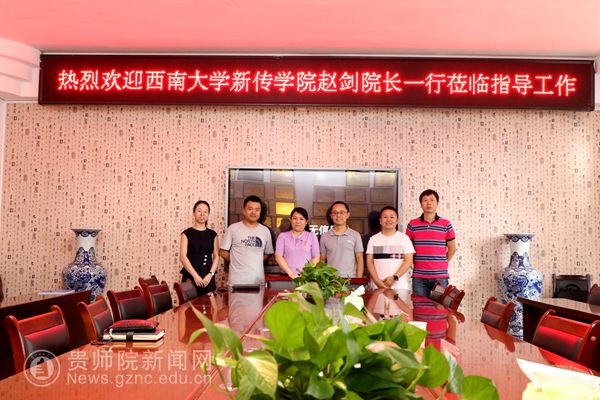 本网讯 9月16日下午,西南大学新闻传媒学院副院长赵剑,老师王命洪以及重庆广电集团代表马政波莅临我院交流。文学与传媒学院党委书记韦丹、副院长杨波、广播电视编导系主任娄立原、教师黄华出席活动。文学与传媒学院广播电视学、广播电视编导专业部分学生参加活动。
