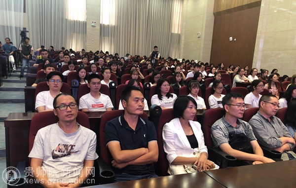本网讯 9月6日上午,教育部教师工作司组织的“青春在讲台上闪光——2019年优秀特岗教师全国巡回报告会”在贵州师范大学花溪校区学术报告厅举行。我校50名师生代表在教师工作处副处长王茜的带领下参加了报告会。教育部教师工作司巡视员刘建同、教育部教师工作司干部钱程,省教育厅副巡视员龚宁,及师大校领导出席报告会,在筑各兄弟师范院校的师生代表400余人共同聆听了这场感人至深的报告。