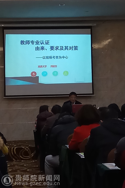 教育部师范类专业认证专家南通大学原副校长周建忠教授、教育部师范类专业认证专家东北师范大学教师教育研究所所长李广平教授、教育部师范类专业认证专家重庆市教育评估院职教检测中心主任田腾飞教授分别做了主题报告。通过参加此次会议,我校教师了解了师范类专业认证的由来、要求及对策,对如何构建与完善教师教育质量保障体系有了更深的认识。