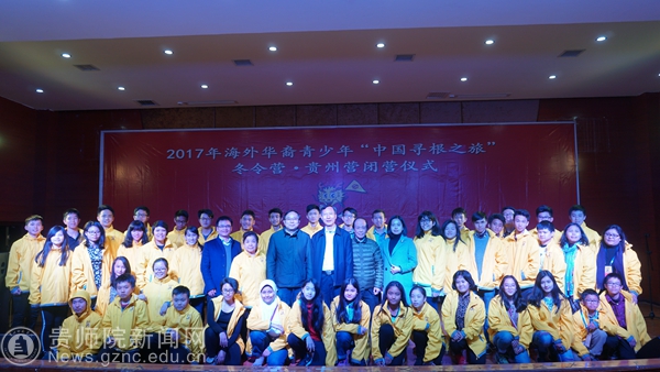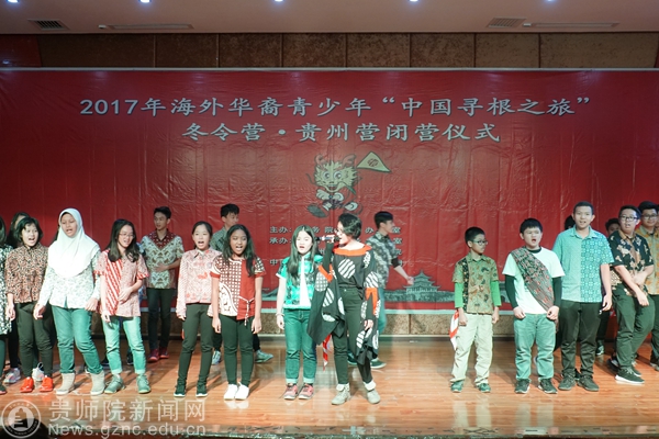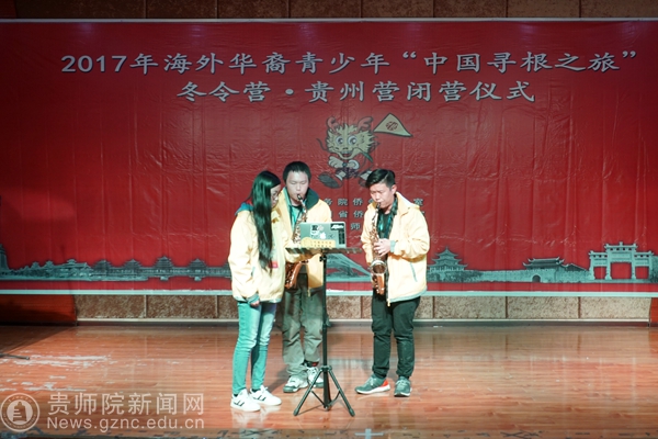 本网讯 12月26日下午,2017年 “海外华裔青少年中国寻根之旅”冬令营贵州营闭营仪式在我校艺术学院音乐厅隆重举行。贵州省外事(侨务)办公室副主任刘宝昌、我校令狐荣锋副校长出席仪式,文学院院长吴俊、校团委书记张婷、对外交流合作处副处长陶秀筑、梁瑞以及111名来自澳大利亚、马来西亚、印度尼西亚的学员及带队教师参加了仪式。仪式由伟德国际1949官网对外交流合作处处长张瑶主持。