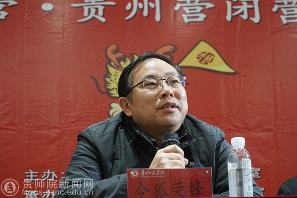 首先,令狐荣锋副校长发表讲话,他说道经过十天的冬令营,学员们对于祖国文化都有所了解和认识,并希望他们把此次活动的所见所闻和学习到的知识传达给身边的朋友,让更多的海外华人能更多地了解我们的祖国、了解贵州,提高学习中国文化的兴趣,推动海外华文教育交流的发展。同时,令狐荣锋也对省侨办对我校第一次独立承办冬令营给予的信任和支持表示感谢。