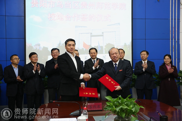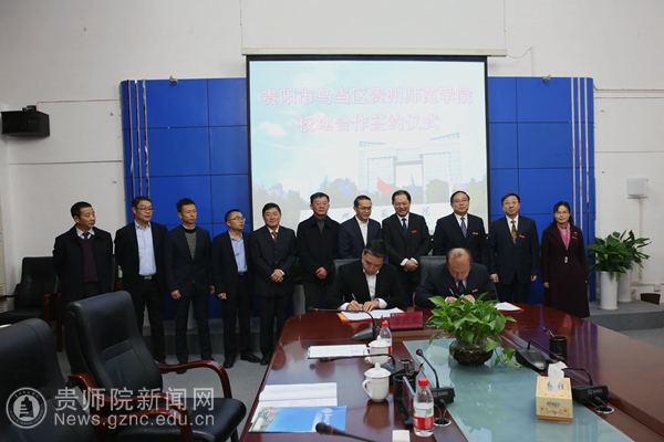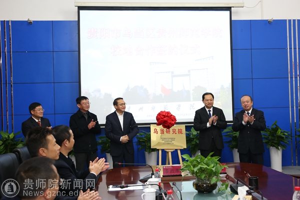 乌当区区委办、区政府办、区委组织部、区委政研室、区政府经研室、区发改局等相关职能部门,我校党政办、组织部、教务处、科研处、教师工作处、图书馆、重点实验室及各相关学院主要负责人参加了签约仪式。