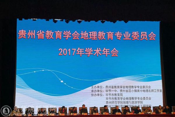 本网讯 12月21至24日 ,由贵州教育学会地理教学专业委员会主办,毕节市第一中学、贵州省屈小锋高中地理名师工作室承办,我校协办的贵州教育学会地理教学专业委员会2017年综合学术年会在毕节市第一中学举行。大会由我校教师、贵州教育学会地理教学专业委员会秘书长郑建副教授主持。出席嘉宾有张凤太教授(贵州教育学会地理教学专业委员会理事长)、甄峰教授(南京大学,中国地理学会城市地理专业委员主任)、邓宏教授(贵州师范大学、贵州省地理学会秘书长、贵州教育学会地理教学专业委员会副理事长)、陈群利教授(贵州工程应用技术学院校办主任、贵州地理学会常务理事)、王发礼(毕节市教育局党组书记、局长)、兰珩(贵州省清华中学校长、贵州教育学会地理教学专业委员会副理事长)、屈小锋(贵州省毕节一中校长)、陈洪生(贵州师范大学附属中学副校长、贵州教育学会地理教学专业委员会副理事长)、汪际(贵州省教科院党委书记、贵州教育学会地理教学专业委员会副理事长)、张玉玲(贵州省地理教研员、贵州教育学会地理教学专业委员会副理事长)、郭剑锋(浙江省地理教研员、特级教师)、莫世江教授(贵州工程应用技术学院)等。以及来自贵州省内外地理教育领域的200余人参加了会议。