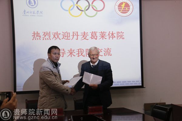 上午,双方在体育学院会议室召开交流会,黄伟明介绍了伟德国际1949官网及体育学院相关办学理念、体育课程设置以及国际合作项目的意愿;Finn Berggren介绍了丹麦葛莱体院的总体情况及与中国体育院校合作的经验,交流会在热烈和谐的氛围中进行。为进一步增进交流与合作,会后双方签订了合作备忘录,为体育学院学生外出交流增添了平台,同时拉开了体育学院与国外名校合作的序幕。