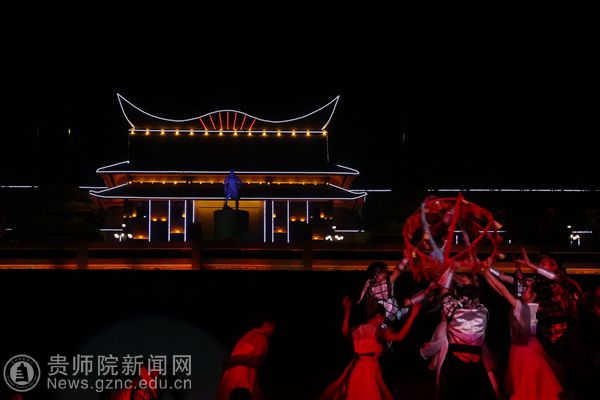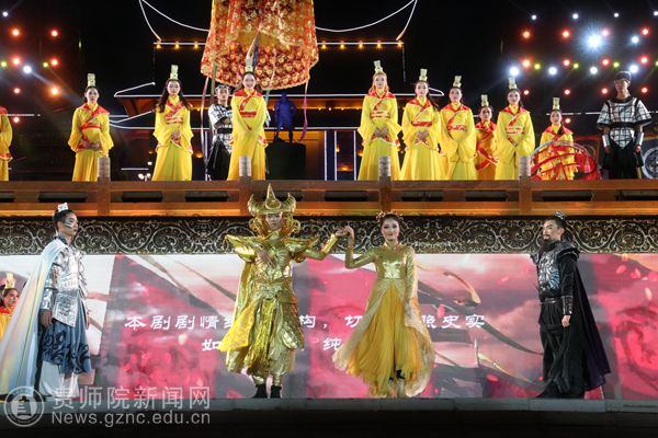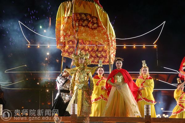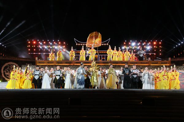 本网讯 受六盘水市六枝特区人民政府邀请,11月9日至12日,我校艺术学院213名师生携带大型实景山水剧《夜郎传奇》赴牂牁江畔参加六盘水市第四届文化旅游发展大会,为现场的嘉宾和观众献上了一场精彩的视觉盛宴。六枝微信网进行现场同步直播,近十万观众进行网络收看。