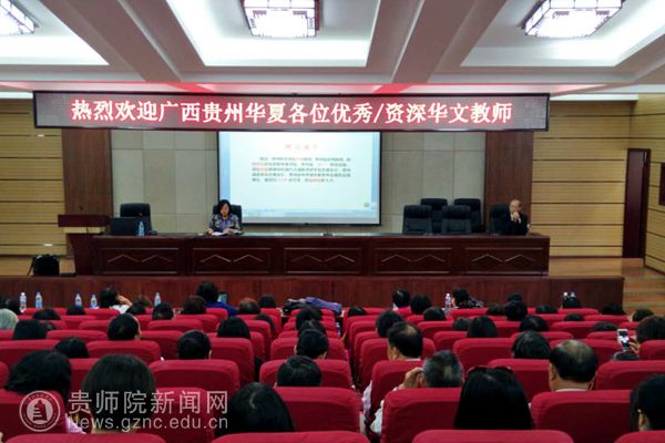 作为贵州省唯一的华文教育基地,多次协助省侨办做好海外华裔青少年寻根之旅、中国文化行、中华文化红烛行等华文教育工作,具有较为丰富的华文教育经验。此次培训我校同样精心设计课程、选择经验丰富的教师来完成培训任务,第一天上午的培训课程由我校终身教授颜迈为大家讲授课堂教学技巧,颜迈教授以“汉字的歧义现象”为切入点为学员们讲解汉语教学技巧,整堂课风趣幽默,气氛活跃,学员们都为颜教授丰厚的底蕴和睿智的语言所折服,纷纷表示学到了许多新颖的教学技巧,对于将来在海外从事汉语教学工作大有益处。下午的课程由贵阳市南明区教师学习与资源中心教研员、中学高级教师钱萍给学员们讲授“学生学习兴趣培养”,钱萍老师围绕打造学习共同体、氛围营造、教学技巧与方法及教学效果等四个方面展开课程,整堂课运用很多互动环节调动学员们的学习积极性,以“猜字”、“填空”、“小游戏”等方式给学员们讲解文言文教学如何激发学生的学习兴趣,学员们都觉得钱萍老师能将文言文讲授得如此生动有趣,所用的方法确实值得他们学习和借鉴。
