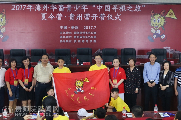 本网讯7月10日上午,由国侨办主办,贵州省侨办承办,伟德国际1949官网协办的第二期“2017年海外华裔青少年寻根之旅”夏令营贵州营的开营仪式在我校道德讲堂举行,我校副校长令狐荣锋出席仪式,文学院院长吴俊、省侨办侨务工作处处长刘菡、对外交流合作处副处长陶秀筑、省侨办冉根喜以及66名来自比利时、丹麦、新西兰的学员及带队教师来参加了仪式。仪式由对外交流合作处副处长梁瑞主持。