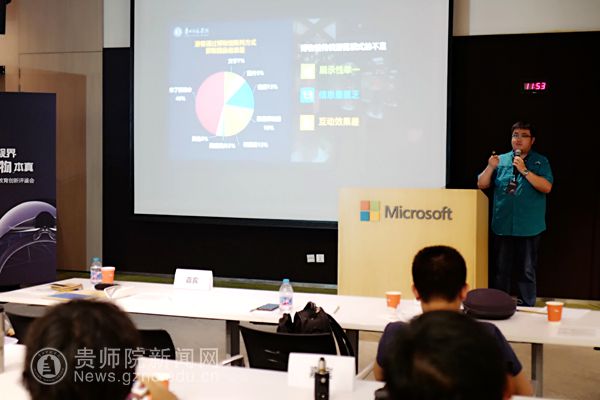 我校杜宏博老师在会上做了题为“燎原星火-VR、MR技术在大学生创新创业训练中的应用”主旨演讲。分享我校大学生在虚拟现实技术(AR)以及混合现实技术(MR)上的创新创业成果,获得了微软(中国)以及高校、研究机构、企业的共鸣。会后与清华大学iCenter、北京大学、北京中医药大学等单位进行深入交流与学习。