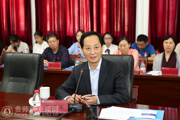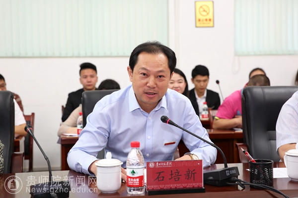 校党委书记石培新在欢迎辞中首先代表学校欢迎优秀校友回家,并衷心感谢石亚军书记在我校迎评改制期间给予我校的大力帮助。石培新追述说,2009年5月30日,是贵州教育学院30年院庆暨伟德国际1949官网挂牌成立的喜庆日子,亚军书记亲临现场,并且作为校友代表发表了热情洋溢的讲话。石培新特别指出,今年5月3日,习近平总书记到中国政法大学考察,看到新闻,我们师院人为亚军书记感到骄傲和自豪。石培新恳请石亚军书记向我校师生传达习近平总书记在中国政法大学重要讲话精神,并对我校今后在“双一流”建设中如何发展进行指导。